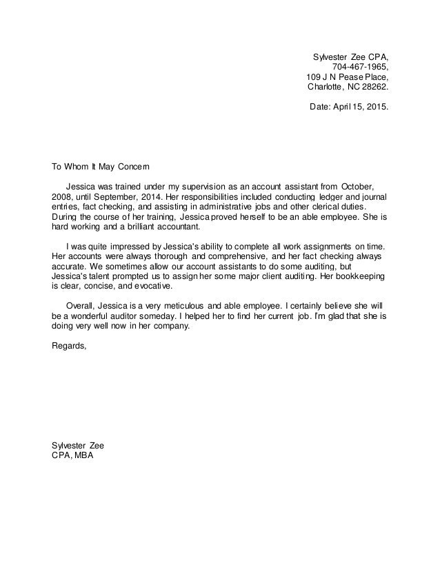 A well constructed employment reference letter is a valuable It is important to ensure your reference letter achieves both these purposes. CHC has mentioned this in their requested documents list. Are you a Certified Public Accountant (CPA) that needs help with your cover letter?